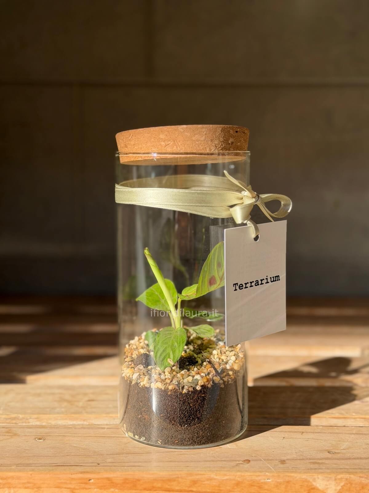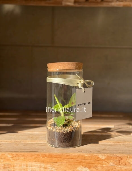Piccola pianta racchiusa in un elegante vaso in vetro